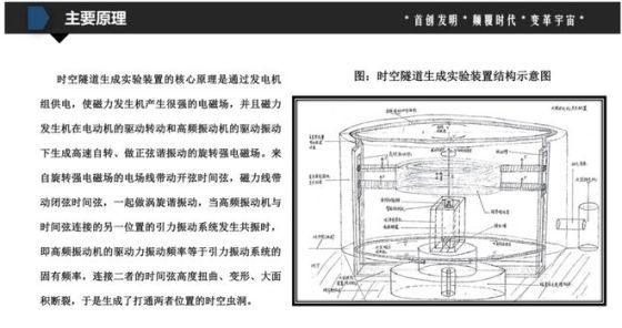 „Zařízení může narušit čas a prostor, řídit rychlost času, prorazit bariéru času a prostoru a může být široce používáno pro cestování v čase, mezihvězdnou plavbu, prodloužení života atd.