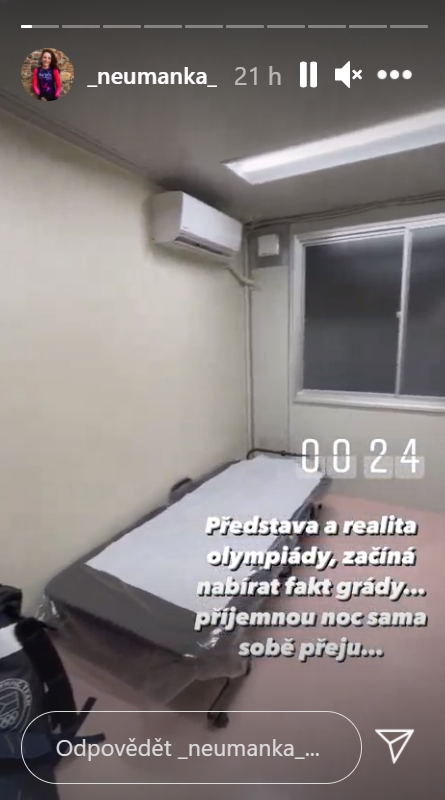 „Představa a realita olympiády, začíná nabírat fakt grády… Příjemnou noc sama sobě přeju.“