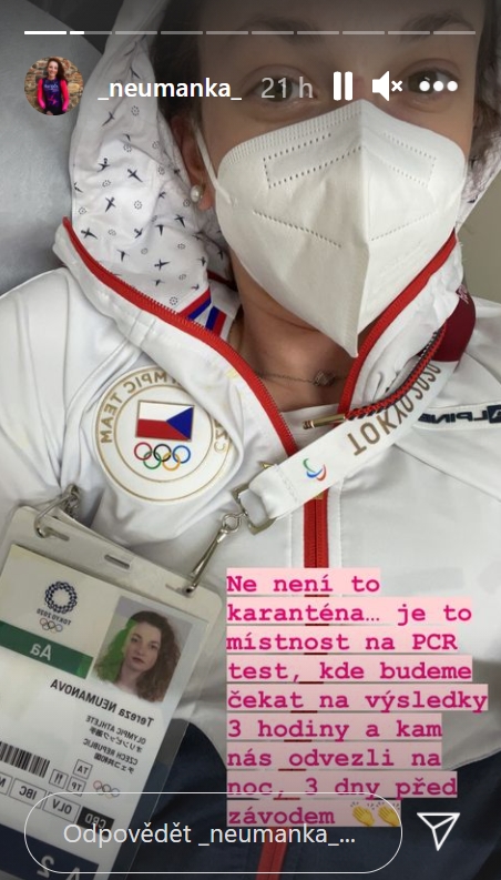 „Ahoj, po posledních 48 hodinách, kdy to s námi bohužel nevypadalo nejlíp, se povedlo zajistit, že pokud budeme mít i nadále všechny testy negativní můžeme do svých závodů nastoupit. A za to jim patří obrovské děkuju. Podmínky mají do ideálu hodně daleko, ale když už jsme to nevzdali doteď tak už to dotáhneme až do cílové pásky. Nejlíp jak to jen půjde,“ uvedla Tereza Neumannová.