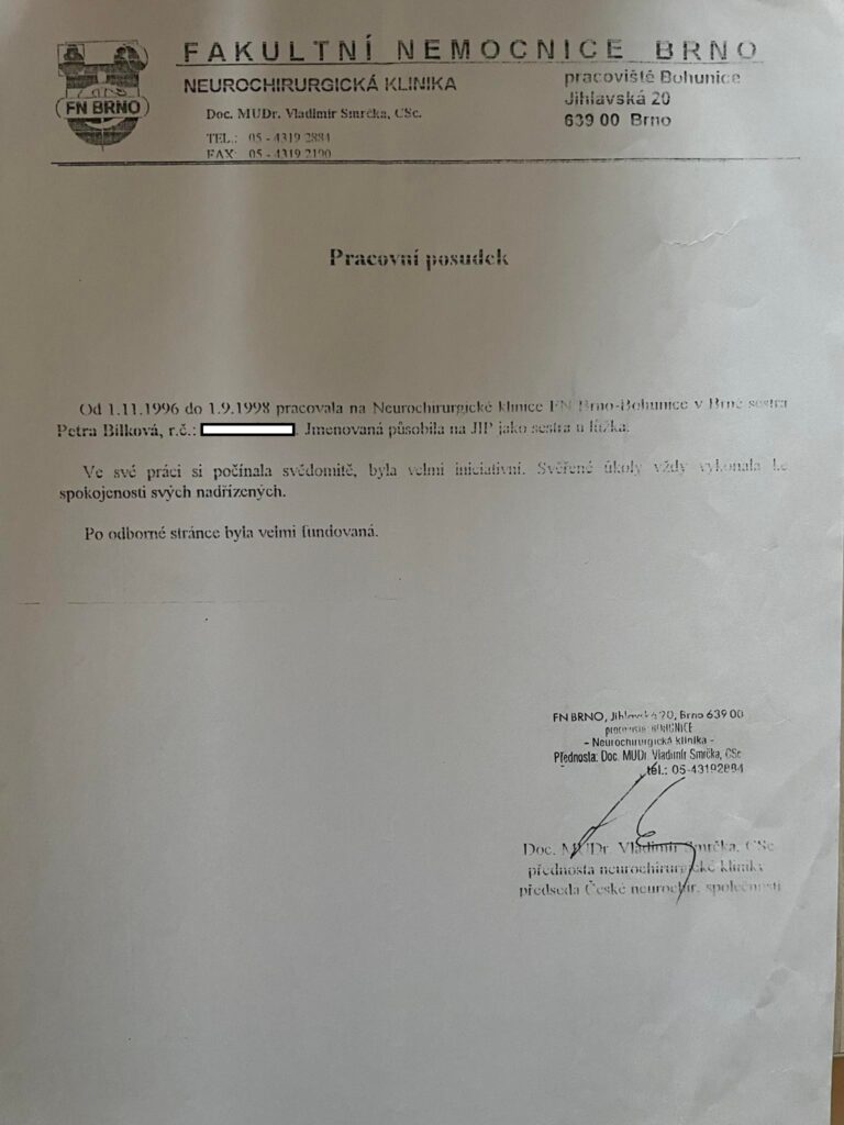 FAKTA: Nikdy jsem netvrdila, ze pracuji v Brně a evidentně si to někdo spojil, když mám na profilu napsáno, ze žiji v Brně. Není ani pravda, ze by mě nemocnice v minulosti nezaměstnávala. Pracovala jsem tam za svobodna (pod jiným příjmením) a odešla jsem dobrovolně, níže je uveden pracovní posudek: