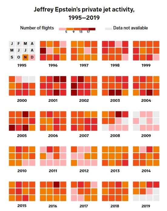 Aktivity Jeffreyho Epsteina v soukromých letadlech, 1995-2019