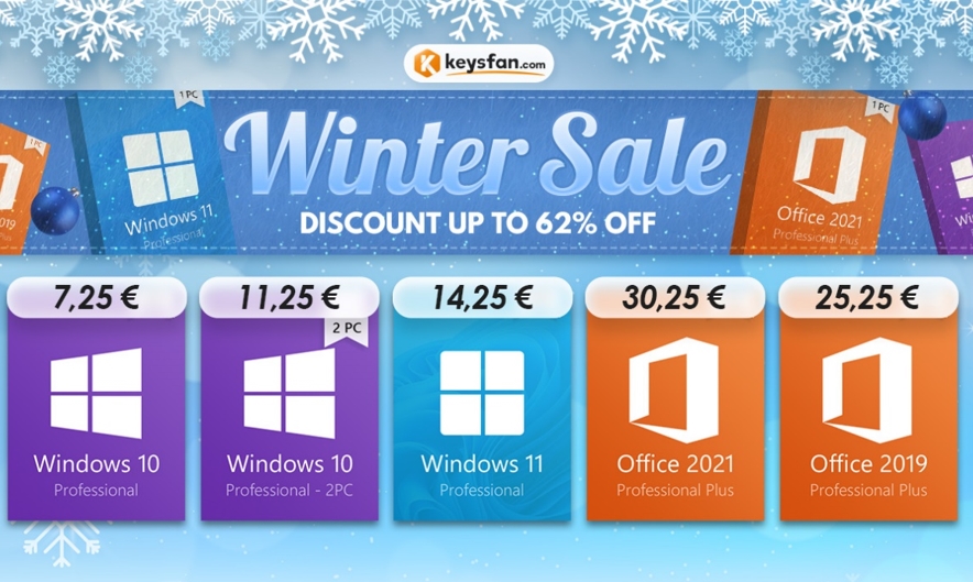 Získejte nabídky Windows a Office v zimním výprodeji, ceny začínají na 7,25 €