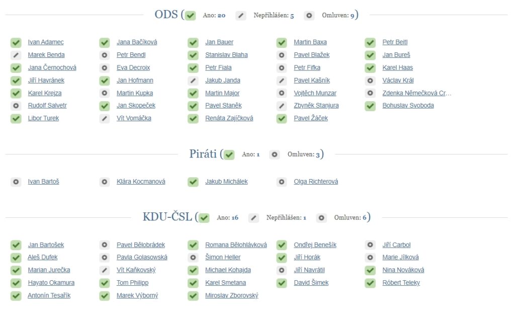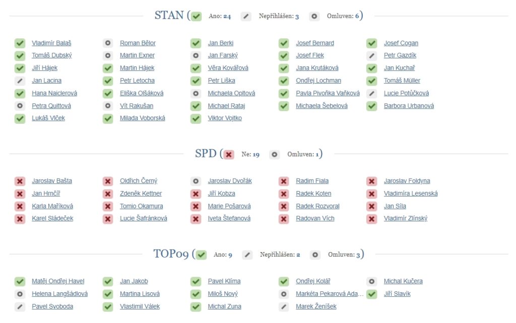 Kdo a jak hlasoval ohledně pandemického zákona? Přehledný seznam poslanců