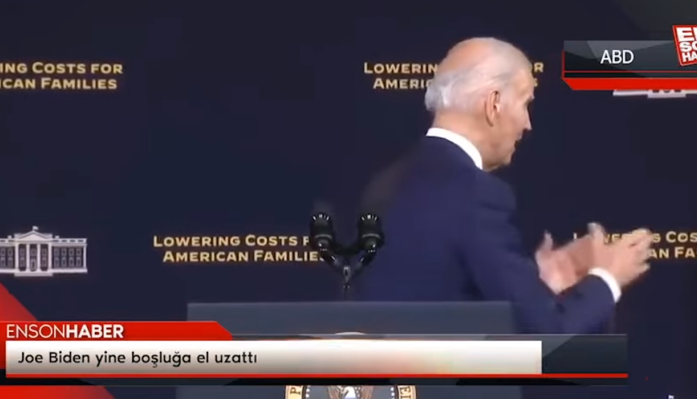 „Potřásl si rukou“ s americkým prezidentem Joem Bidenem, zatímco na pódiu nebyl nikdo jiný než on. Tyto okamžiky opět zachytila kamera. (Foto: Youtube)