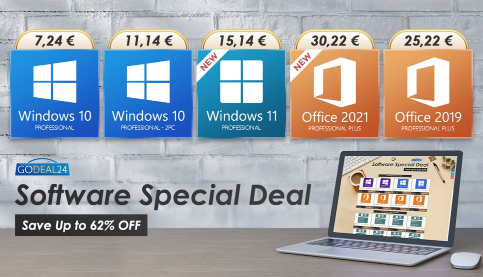 Právě teď probíhá u společnosti Godeal24 speciální akce s nižšími než obvyklými zvýhodněnými cenami! Windows 11 jen za 15,14 €! Nakupte více, ušetřete více. Windows 10 již za 5,6 € za počítač! Microsoft Office 2021 jen za 30,22 €. Další žhavý software Microsoft za nejnižší cenu (Windows 11, Office 2019, Office 2016 atd.) Porovnejte oficiální cenu a pomozte si ušetřit spoustu peněz! V tomto výprodeji ušetříte až 62 % z ceny operačního systému Windows a kancelářského balíku MS Office!