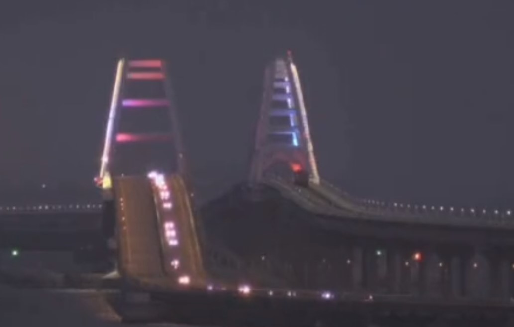 La Russia come testimoniano le immagini ha ristabilito a tempo di record il traffico sul Ponte in Crimea oggetto stanotte di un attentato terroristico.