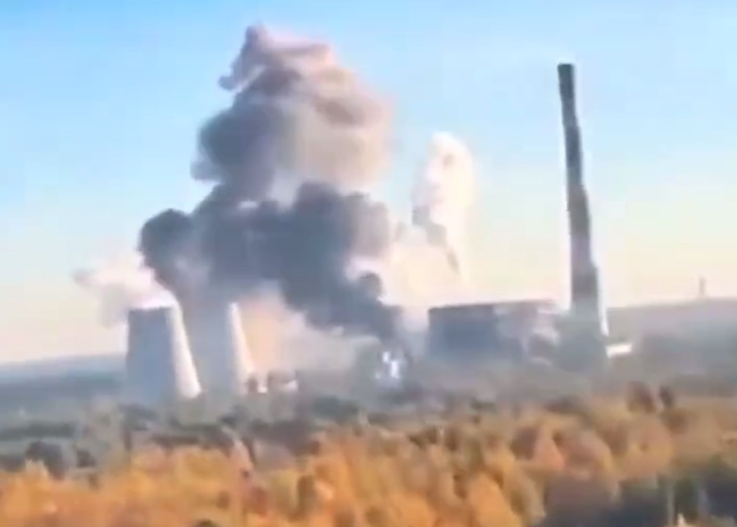 Video shows yesterday attack on power plant in #Kyiv. Second missile was shot down or self-destructed.#RussiaIsATerroristState pic.twitter.com/TPVMjWDEK2