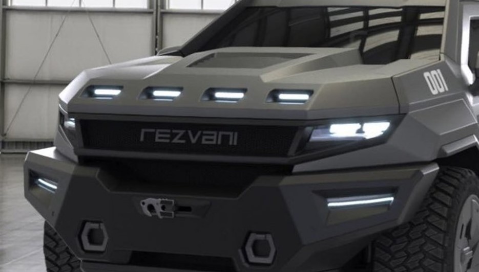 Nejnovější výtvor kalifornského stavitele nákladních automobilů na zakázku Rezvaniho využívá Escalade a mění ho na futuristické vojenské vozidlo, které vypadá téměř jako nákladní automobil „Warthog“ z videohry Halo. (Foto: Twitter / Rezvani Motors)