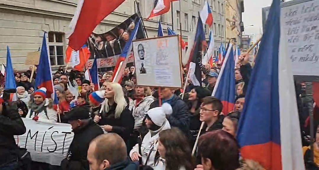 Na výročí 17. listopadu se konala demonstrace s názvem Česko na 1. místě, která měla za cíl vystoupení v České televizi v přímém přenosu. (Foto: Facebook)Podle odhadů se účastnilo protestu několik tisíc lidí, policie v průběhu průvodu uzavřela pražskou magistrálu.