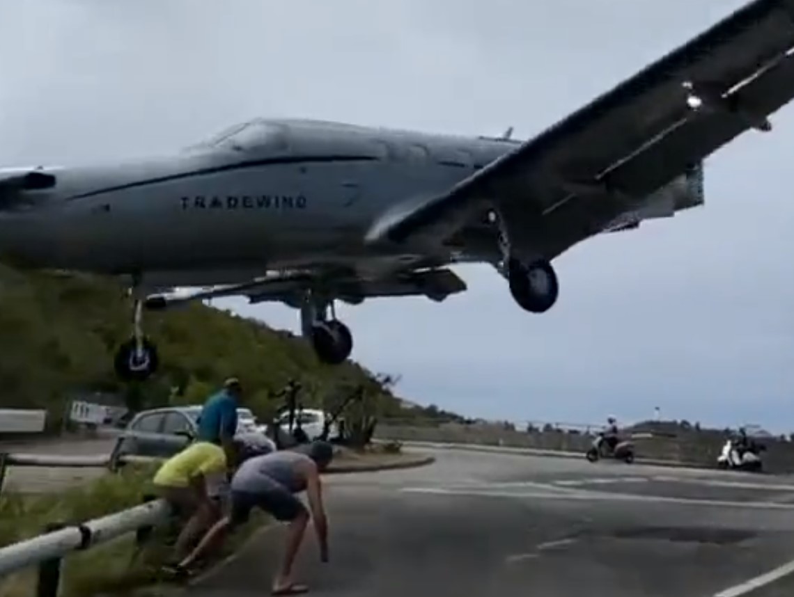 Zpomalený záběr přistání letounu PC-12 na letišti Saint Barthélemy, které je považováno za jedno z nejnebezpečnějších letišť. (Foto: Twitter)