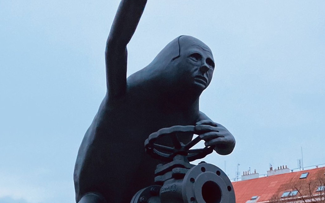 Parę lat temu władze @Praha6 usunęły stąd marszałka Koniewa. Od dziś jest tu ork z twarzą Putina, zakręcający kurek nad Europą. To kolejna akcja @DarPutinovi. @PR24_pl pic.twitter.com/EkrpmP51mg