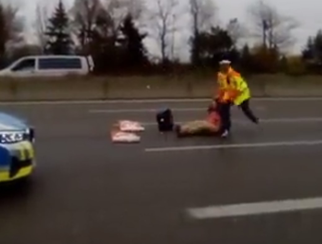 Německý policista rázně zakročil na dálnici proti hloupému aktivistovi