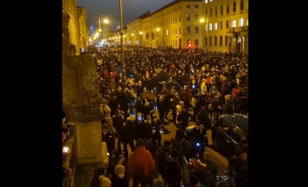 Protestující v pátek pochodovali proti prudce rostoucí inflaci a zvyšujícím se životním nákladům v německém Mnichově. (Foto: Twitter)
