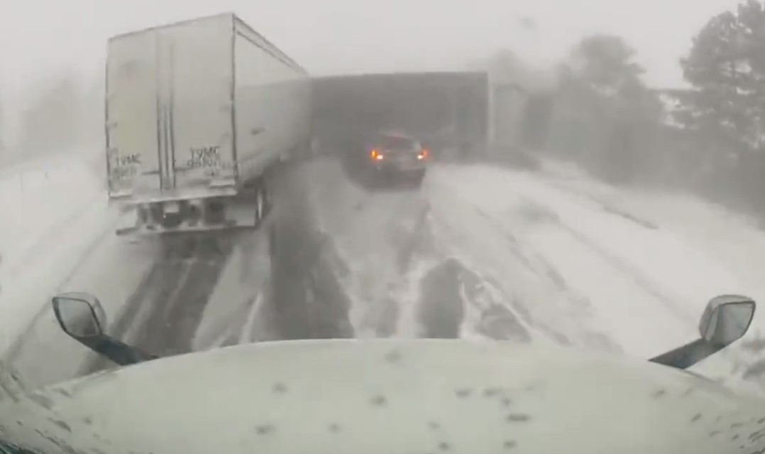 Podívejte se na neuvěřitelné záběry z palubní kamery, na kterých se kamionista dostal do velké kolony na dálnici 401 v kanadském Ontariu. (Foto: Twitter)🚨#BREAKING: Watch Dashcam Footage Of Major Pileup on the 401 Highway📌#Ontario l #CanadaWatch incredible Dashcam footage of a Trucker Getting into a Major Pileup on the 401 Highway in London Ontario Canada …