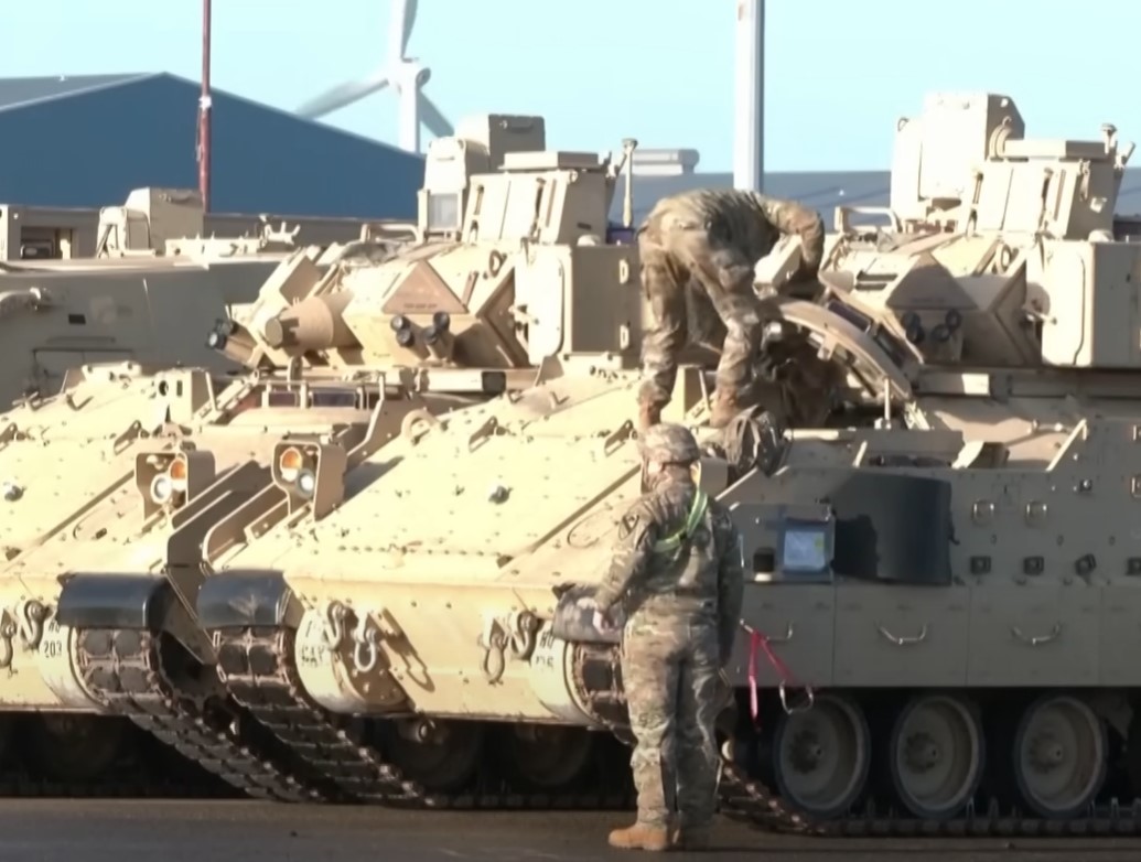 Mezi technikou jsou tanky M-1 Abrams a bojová vozidla Bradley z 2. brigádního bojového týmu 1. jezdecké divize z texaské základny Fort Hood.