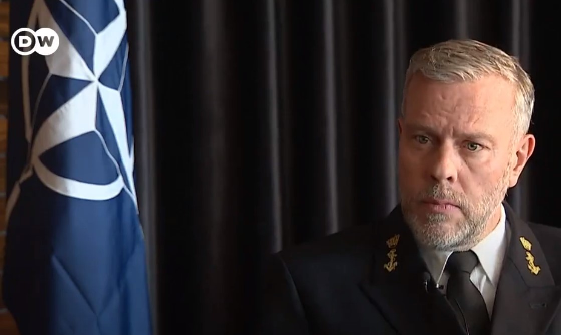 NATO je připraveno na přímou konfrontaci s Ruskem, tvrdí šéf Vojenského výboru NATO admirál Rob Bauer. (Foto: Twitter / RTP/DW)