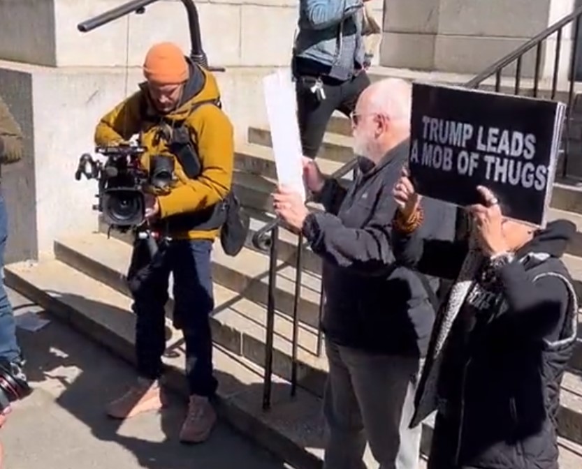 V New Yorku žije přes 8 milionů lidí a přesně dva z nich přišli protestovat proti Trumpovi, zatímco asi 20 členů MSM to natáčelo. Média lžou. (Foto: Twitter)