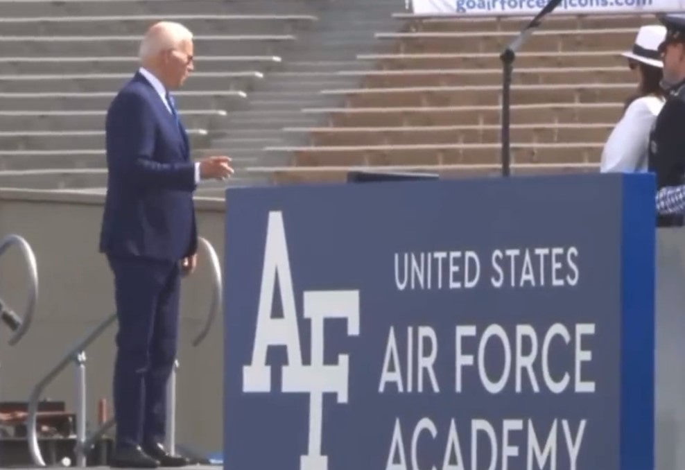Biden k ničímu překvapení upadl během čtvrtečního slavnostního ceremoniálu promoce na Akademii amerického letectva v Coloradu.