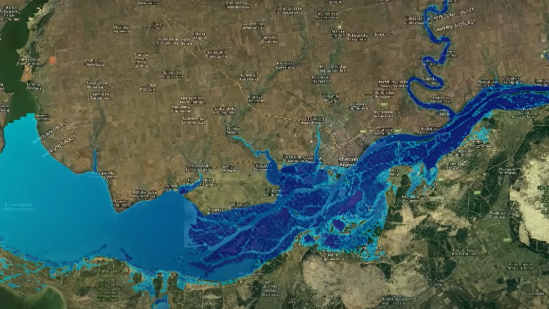 Model nejhoršího případu po protržení přehrady Nova Kakhovka