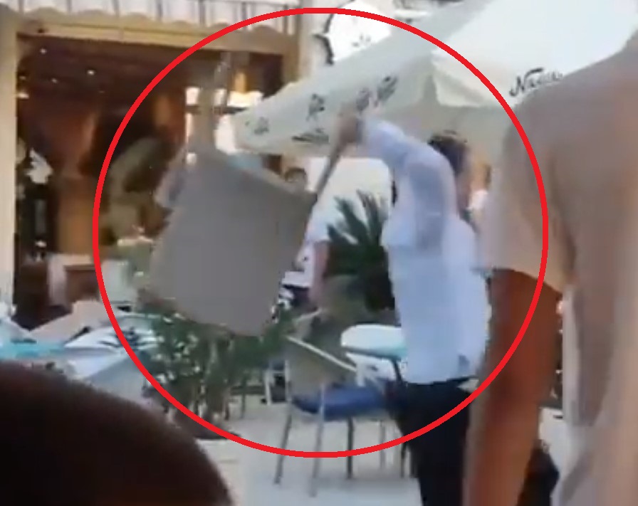 In #Montenegro, a tourist from #Russia behaved aggressively and defiantly towards the waiters, for which he received a chair on the back. pic.twitter.com/NNO9yhPsKY