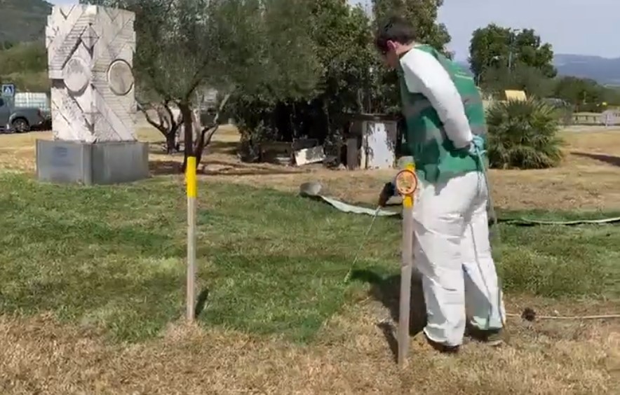 Video zachycuje muže, který stříká zelenou barvu na zažloutlou trávu na kruhovém objezdu, aby změnil její barvu. Starosta nadšeně chválí tuto „neobvyklou a ctnostnou“ inovaci a tvrdí, že město s 22 000 obyvateli je první, které ji „používá ve Středomoří“.