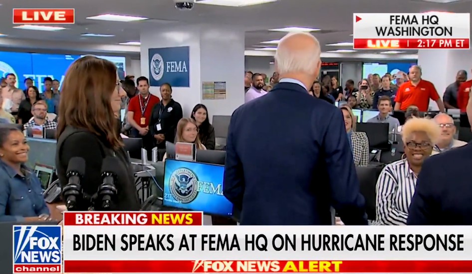 Americký prezident Joe Biden je po projevu v sídle FEMA ztracen a ptá se: „Kam teď jdu?“ (Foto: X / Fox News)
