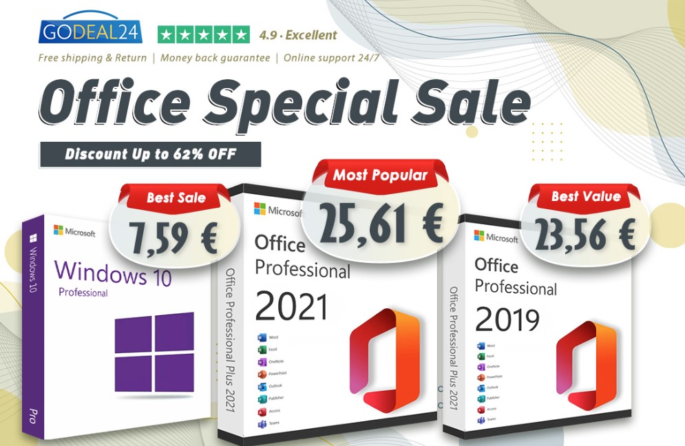 Pokud tyto nové funkce potřebujete, speciální výprodej Godeal24 Office vám pomůže vyřešit vaše cenové obavy. Doživotní verze Office 2021 Pro Plus vás vyjde jen na 25,61 €! To je již nejnižší cena! Pokud vám však Office 2019 Pro vyhovuje více! V tomto výprodeji je také za cenu 23,56 €! Využijte šanci a kupte si to, co vám vyhovuje.