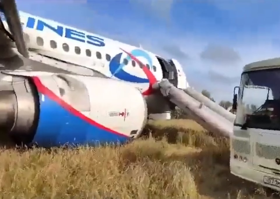 Pravidelný osobní let společnosti Ural Airlines ze Soči do Omsku nouzově přistál na poli v západosibiřské oblasti Novosibirsk, informují ruské tiskové agentury. (Foto: X)