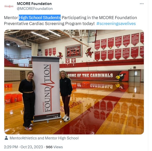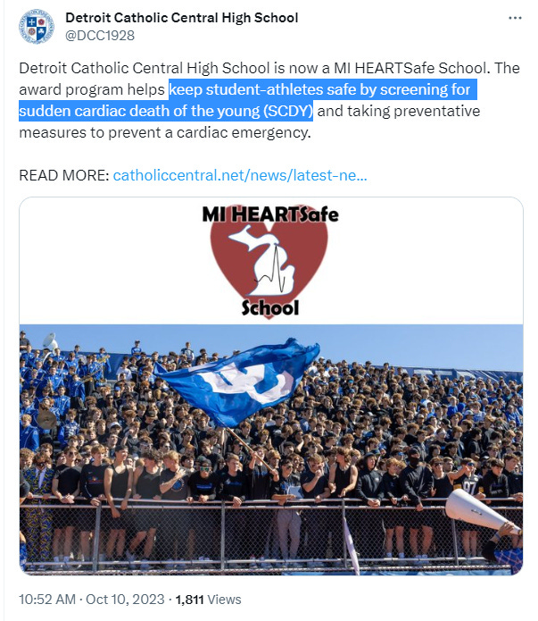 22. září 2023 – Greeneville, TN – 12letý Kaden Gunter , fotbalista střední školy v Greeneville, zkolaboval během fotbalového tréninku se „srdeční příhodou“ a 22. září 2023 náhle zemřel.