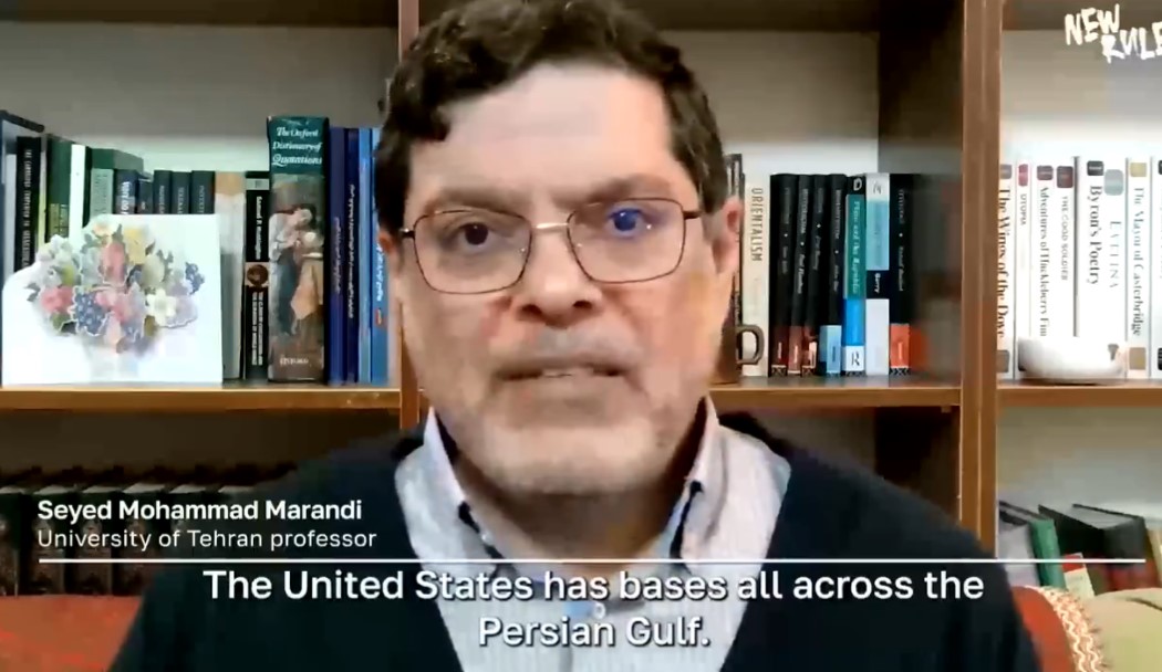 Profesor Seyed Mohammad Marandi varuje před scénářem, pokud dojde k útoku USA na Írán, západní ekomoniky se mohou zhroutit. (Foto: X)"Předpokládejme, že Spojené státy udeří na Írán. Spojené státy mají základny po celém Perském zálivu. Íránci na tyto základny udeří. A pak Íránci potrestají i ty země, které tyto základny hostí. Co se stane? Cena …