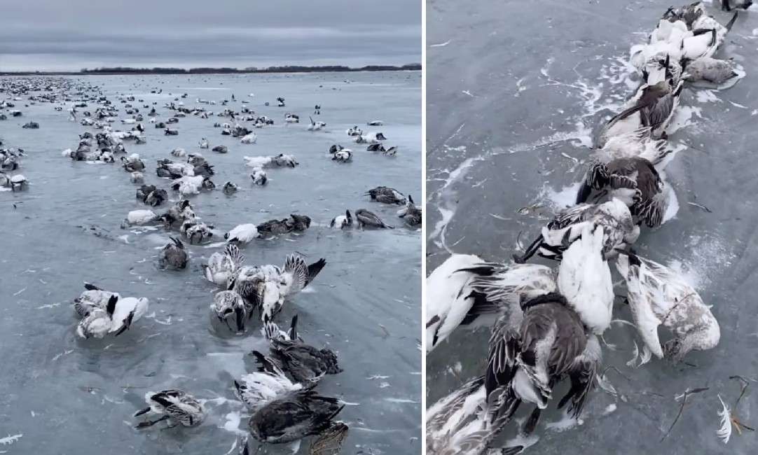 USA - Když si Nate Phinney 9. února ve Watertownu v Jižní Dakotě sbalil své rybářské náčiní na led a vydal se k nedalekému jezeru. (Foto: Instagram)Nečekal scénu, kterou po příjezdu na místo našel - asi 1 000 až 1 500 mrtvých sněžných hus, které se nahromadily a zamrzly do hladiny jezera. Zobrazit příspěvek na …