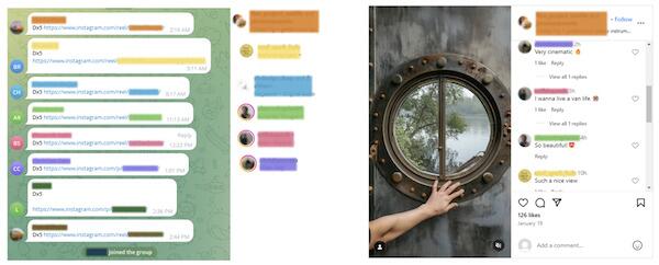 Kartel influencerů je skupina influencerů, kteří se domlouvají na zvýšení svých reklamních poplatků tím, že nafukují metriky zapojení. Stejně jako v tradičních odvětvích (Steen et al. 2013) zahrnují kartely influencerů formální dohodu o manipulaci s trhem ve prospěch členů. Kartely působí v online chatech. Níže uvedené snímky obrazovky ukazují, jak jeden takový kartel funguje v praxi. Obrázek doprava je z online chatovací místnosti, kde členové kartelu předkládají odkazy na svůj obsah za účelem dalšího zapojení. Před odesláním odkazu musí na oplátku lajkovat a komentovat příspěvky ostatních členů. Tato pravidla prosazuje algoritmus. Obrázek vpravo ukazuje tyto komentáře vyvolané kartelem na Instagramu. Historie a pravidla kartelu umožňují sledovat, které zapojení (komentáře) pochází od kartelu.