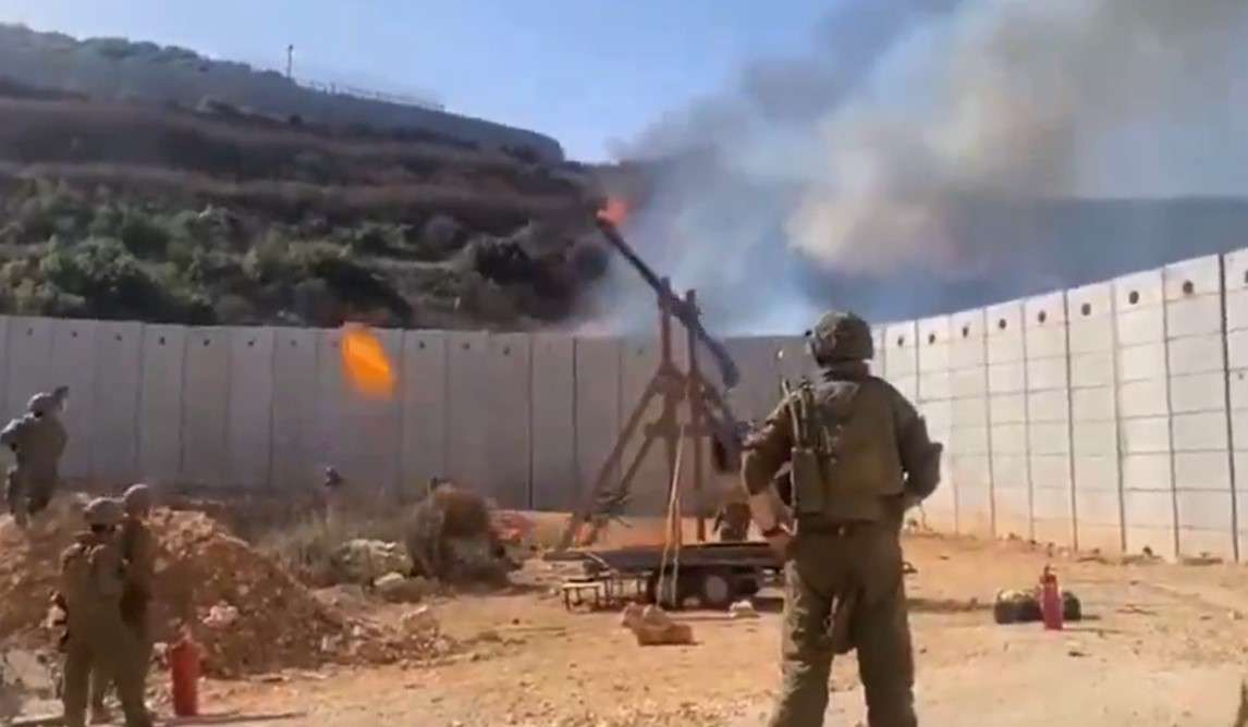 Jednotky IDF v severním Izraeli používají středověký katapult Trébuchet a odpalují zápalné střely směrm na Libanon. (Foto: X)