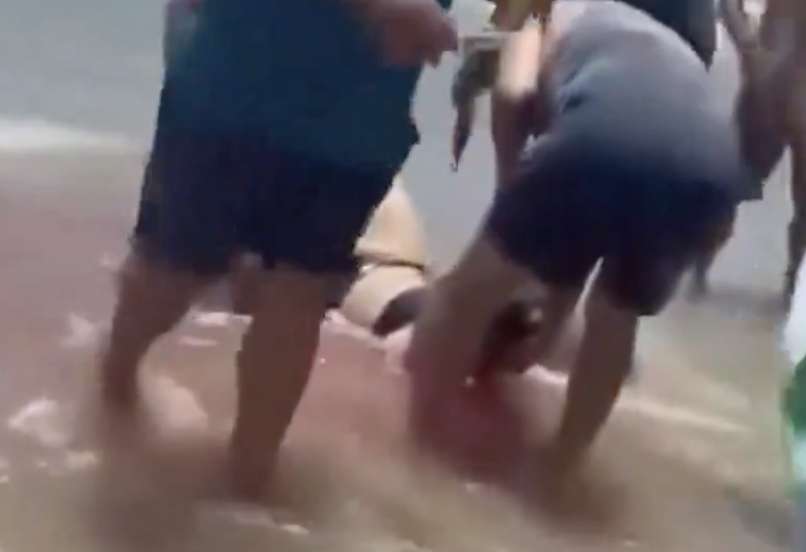 Žralok údajně napadl dva muže a dvě ženy. Jeden z mužů a jedna z žen byli posláni do nemocnice a druhé ženě byla podle svědků ukousnuta polovina nohy.
