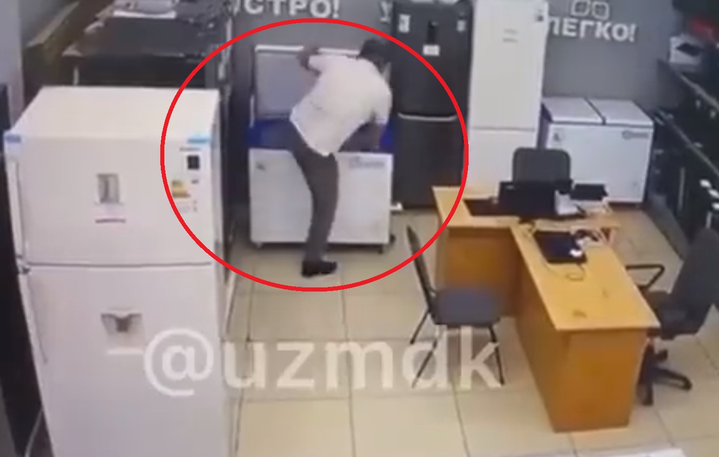 Loupež století v Kazachstánu: Muž přišel do železářství, vlezl do ledničky, aby se po odchodu mohl dostat ven a ukrást zboží. Lednička však byla odvezena spolu s mužem k zákazníkovi. (Foto: Twitter)🤡 Ограбление века в Казахстане: мужик пришёл в магазин техники, залез в холодильник, чтобы потом, когда все уйдут, вылезти оттуда и украсть товар. Но …