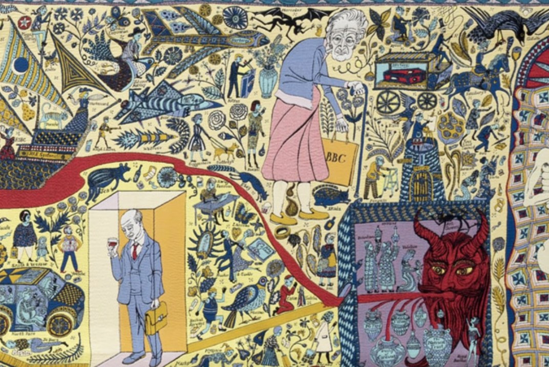 Po nedávném výročním summitu globalistů ve švýcarském Davosu se rozšířilo zvláštní a znepokojivé "umělecké" dílo. (Foto: X / Walthamstow Tapestry)Začalo to tím, že se novinář Larry Alex Taunton v přestrojení vydal na každoroční globalistickou konferenci a pronikl do konferenční místnosti plné elit, které jednaly o cílech udržitelného rozvoje OSN.Během jejich rozhovoru zachytila Tauntonova kamera umělecké …