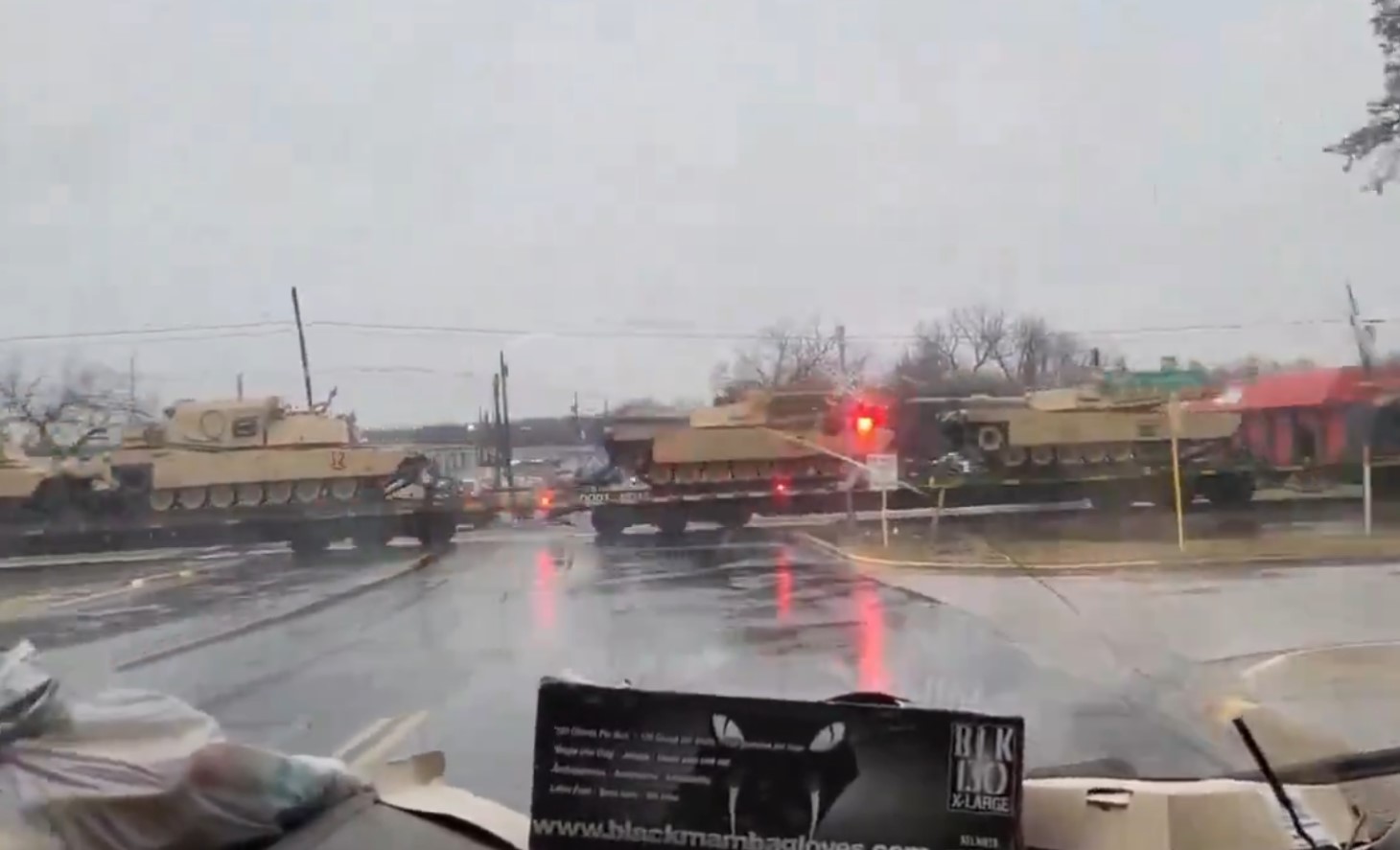USA - Vlak převážející desítky tanků M1 Abrams a Bradley přes Texas směrem k jižní hranici. Všechna tato vozidla patří Texaské národní gardě.Přepravují také samohybné dělostřelectvo, o co přesně jde? Jen pro parádu?“🇺🇸⚡️- A train transporting dozens of M1 Abrams and Bradley tanks through Texas, towards the southern border. All of these vehicles belong to …